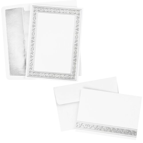 - Silver filigree border on both flat and note cards; perfect for a 25th anniversary