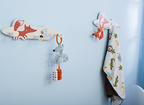 Labebe Children Wooden Animal Wall Mounted Multi Colored Hook, Hat and Coat Fox Rack - Large