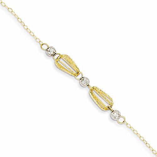 -. Title : 14K Yellow And White Gold Two-tone Diamond Cut Teardrop Cages Bead 1in Ext Anklet