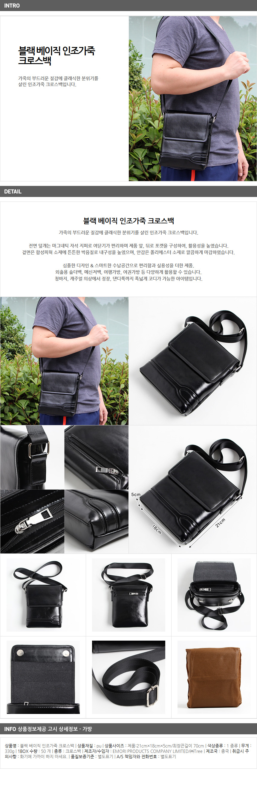 Men's Basic Artificial Leather Cross Back Men Classic Black