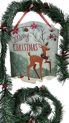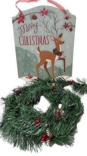 Beautiful Christmas Décor set with Glittery Wooden Forest “Merry Christmas” sign & Hand Decorated Garland, 2 pc bundle.