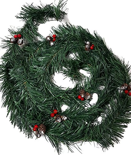 7.5' Handcrafted Greenery Garland is festively sprinkled with bright red berries & snow-dusted mini pinecones! This beautiful garland brings home the winter wonderland forest theme. Swag over the sign, curl around a tabletop display, line a mantle or banister, this garland is one you are going to want more of!