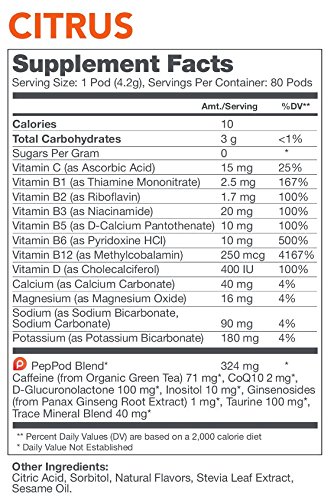 PepPod Nutrient Rich, Sugar Free Energy Drink Pod Tube, Citrus, 10 Count