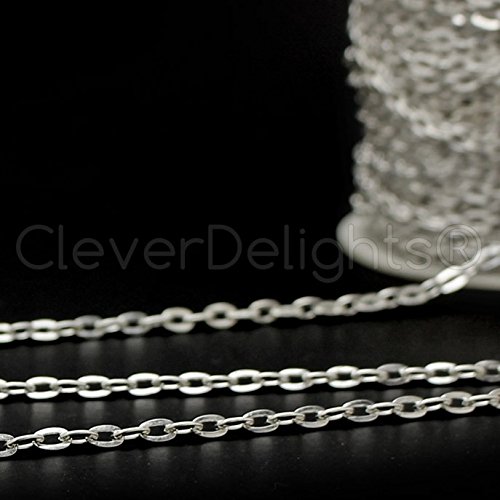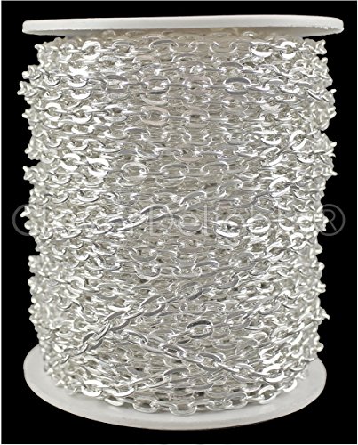 CleverDelights Cable Chain Spool - 30 Feet - Shiny Silver Color - 4x6mm Link - 10 Meters - Bulk Roll