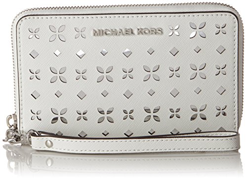-. Title : Michael Kors Jet Set Travel Perforated White Leather Wristlet Wallet Phone Case