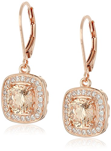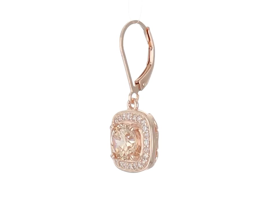 Rose Gold Plated Sterling Silver Round Champagne Cubic Zirconia 7mm and White Cubic Zirconia Lever Back Stud Earrings