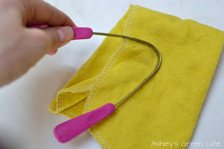 All you need to do it is a tongue scraper. Like this one, which cost me $8 on Amazon. It's called, Dr. Tung's Tongue Scraper. There are a variety of plastic scrapers on the market, but stainless steel ones are supposed to last longer and their unique "U" shape allows them to go farther back onto your tongue, without gagging you as other plastic ones, or regular toothbrushes might.