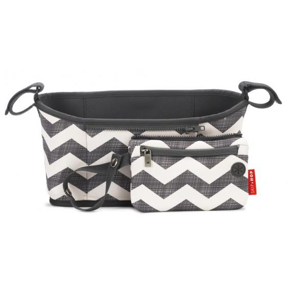 Skip Hop Grab u0026amp; Go Stroller Organizer is a convenient and trendy travel accessory to accompany you and your child when out and about. The stroller organizer is insulated and designed to keep drinks cool. It also stretches to hold bottles and coffee cups securely while also providing easy access to your essentials.