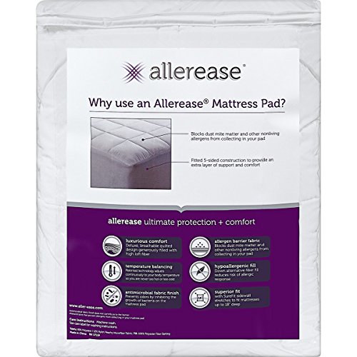 -. Brand : Aller-Ease -. Color : White -. Feature : Fitted 5-sided construction provides an extra layer of support and comfort / Filled with loft-retaining, 100% polyester fiber fill for extra comfort / Patented temperature balancing technology adjusts continuously to your body temperature / Unique fiberfill refluffs with each wash for continuous loft / Stretches to fit 18" deep mattresses -. Label : American Textile Company -. Manufacturer : American Textile Company -. Model : 12250ATC -. MPN : 12250ATC -. PackageQuantity : 1 -. PartNumber : 12250ATC -. ProductGroup : Home -. ProductTypeName : HOME_BED_AND_BATH -. Publisher : American Textile Company -. Studio : American Textile Company -. Title : AllerEase Ultimate Protection & Comfort Temperature Balancing Mattress Pad