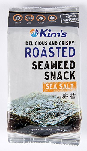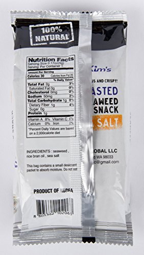Kim's Premium Natural Roasted Seaweed (Nori) Snack 16 Pack / Sea Salt, No Msg, Low Calorie