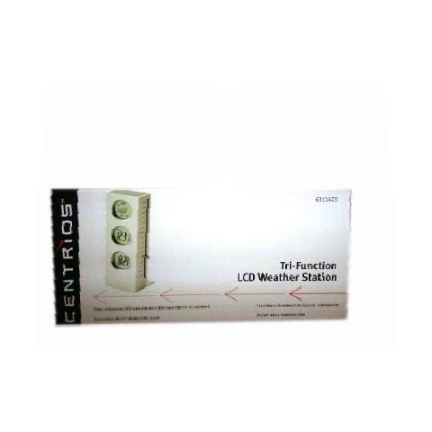 -. Brand : Centrios -. Color : WHITE -. Feature : Three Individual LCD Displays / 200-Year Perpetual Calendar / Selectable Fahrenheit or Celsius Temperature / Sturdy Metal Construction / Home Time, Alarm, and Snooze Setting -. ProductGroup : Lawn & Patio -. ProductTypeName : OUTDOOR_LIVING -. Title : Centrios Tri-Function LCD Weather Station