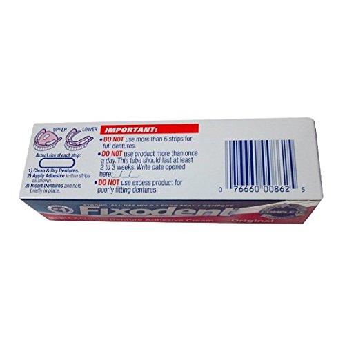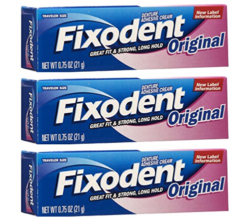Fixodent Denture Original Strong Adhesive Cream 0.75 Oz Travel Size (Pack of 3)