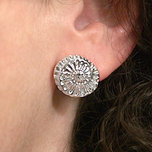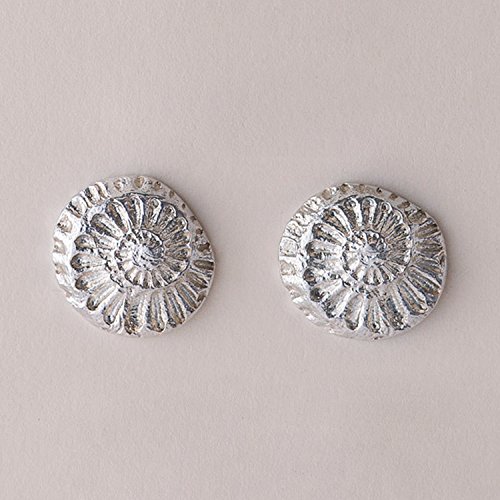 -. Title : 11/16" Ammonite Fossil Earrings, Bright Silver