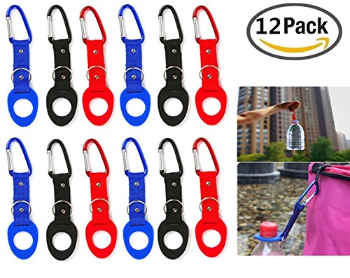 -. Title : JM-capricorns 12 Pack Silicone Water Bottle Holder Hook W/ Key Ring - Hanging Buckle Mineral Water Bottle Clip Drink Holder Buckle for Outdoor Camping Hiking Traveling