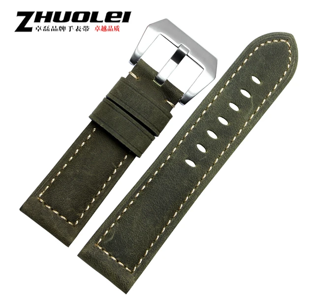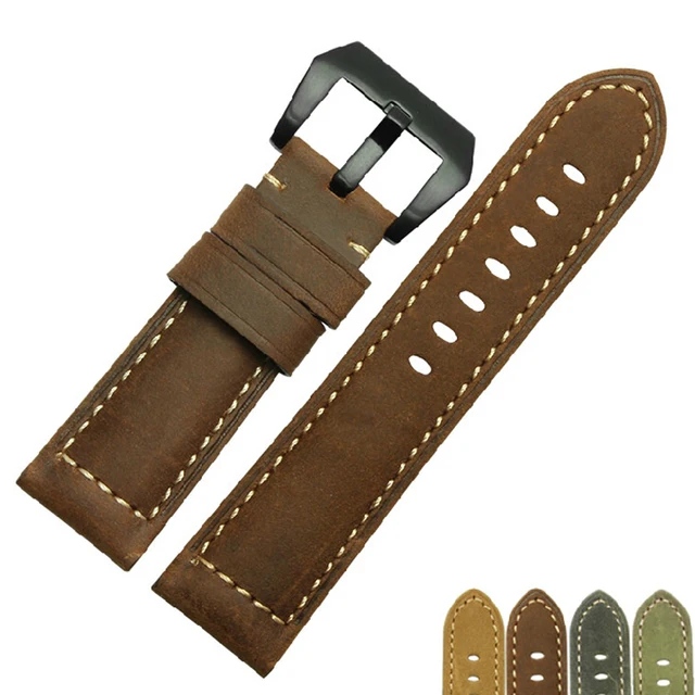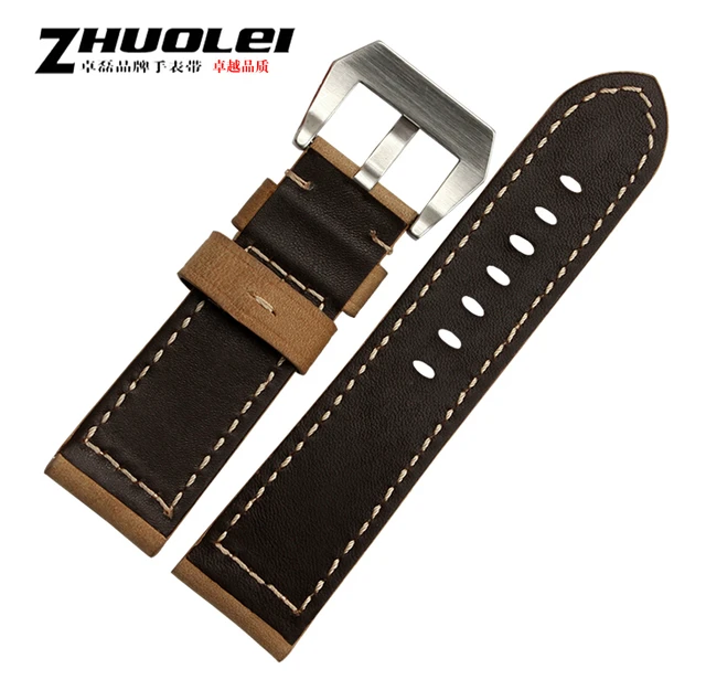 | [해외]시계 스트랩 24 미리메터 새로운 남성 최고 품질의 다크 브라운 정품 가죽 시계 밴드 스트랩 PVD 스테인레스 스틸 버클 |
