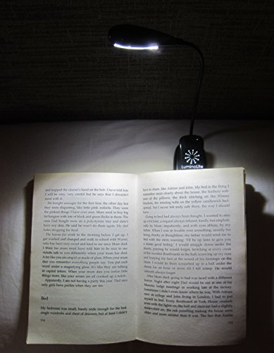 LuminoLite Rechargeable Extra-Bright 4 LED Book Light, Easy Clip On Reading Light, UL Certified AC Charger & USB Cable Included, 2 Brightness Settings, Soft Padded Clamp. Perfect for Bookworms B00YXSF31Q