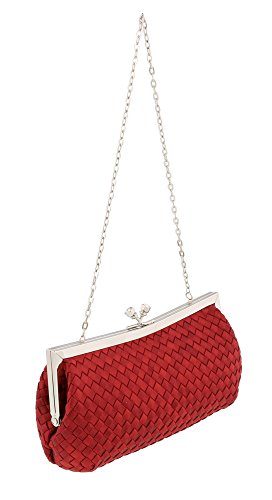 -. Title : Scheilan Red Fabric Weave Knot Clutch/Shoulder Bag