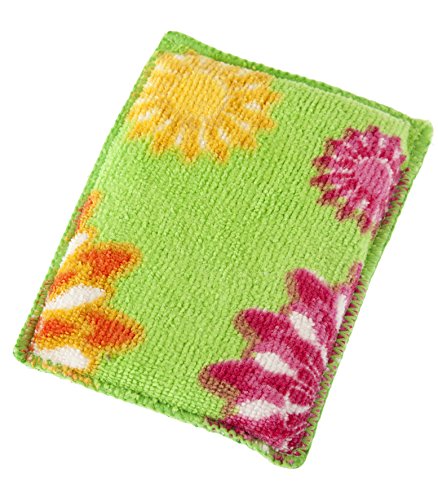 Vigar Flower Power Geranium Microfiber Double Use Sponge 2-Pack, 5-Inches by 3-1/2-Inches, Green, Yellow, Pink