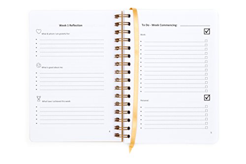 SELF-CONFIDENCE & MOTIVATION - Weekly review section for the user to note what their grateful for, positive reinforcement and their accomplishments. Building self-esteem and inner self-confidence.