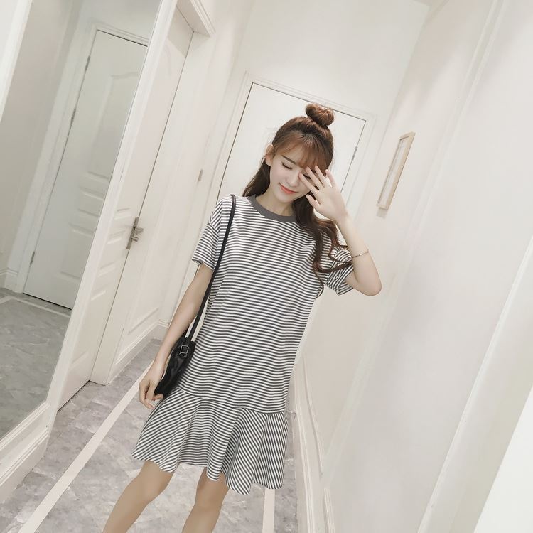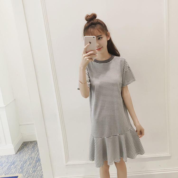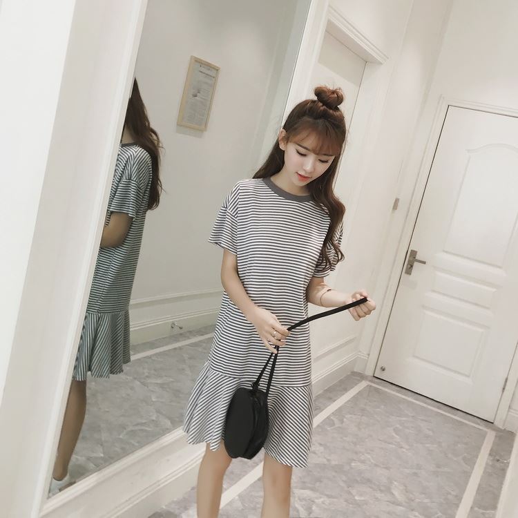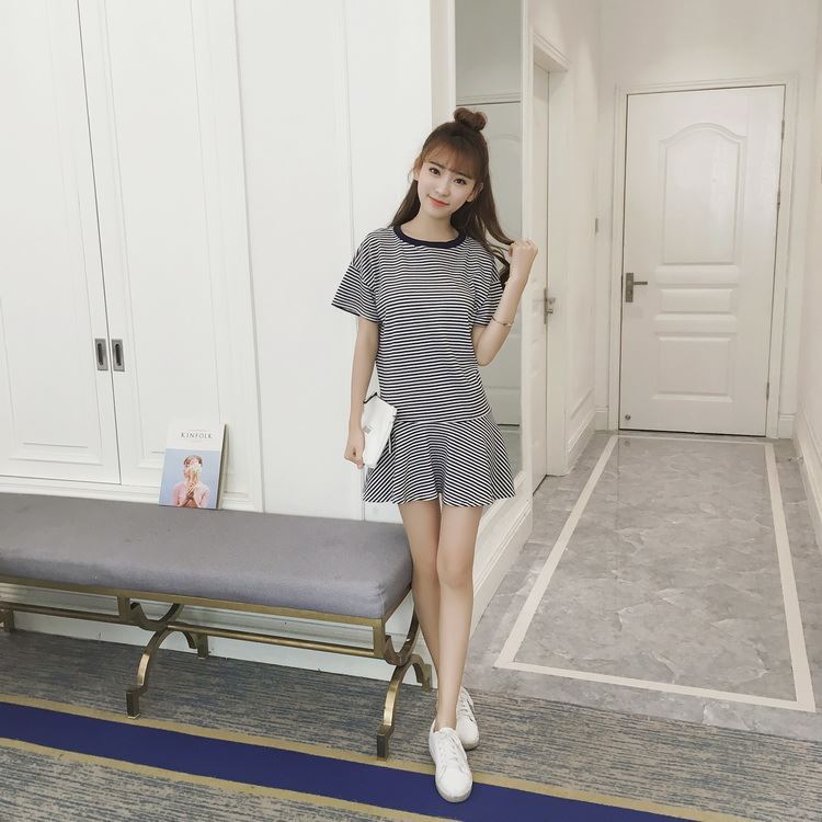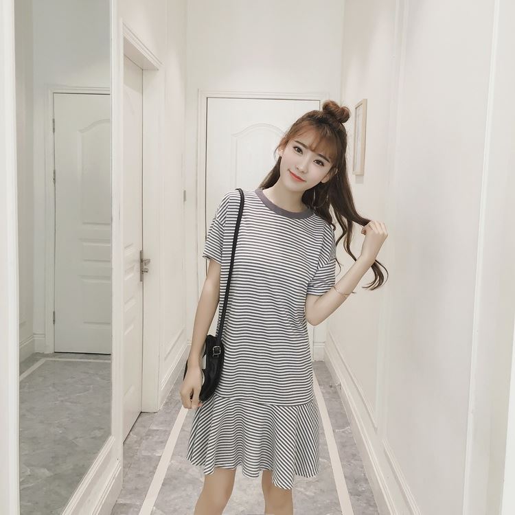 Korean dress style long shift dress casual dresses summer dress shift dress short sleeve dress