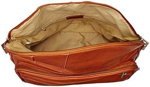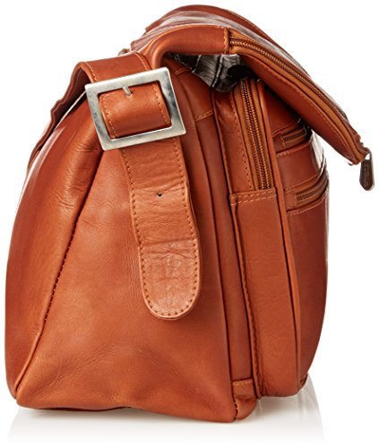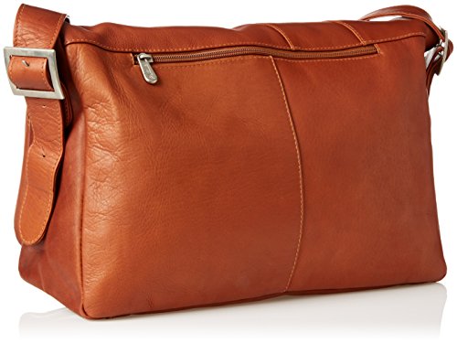 Roomy main zip-compartment with an interior zip-pocket. Fold-over design hides a large zip-compartment with full organizer and two zip-pockets. Rear zip-pocket and a large adjustable cross body shoulder strap