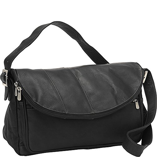 Roomy main zip-compartment with an interior zip-pocket. Fold-over design hides a large zip-compartment with full organizer and two zip-pockets. Rear zip-pocket and a large adjustable cross body shoulder strap.Feature