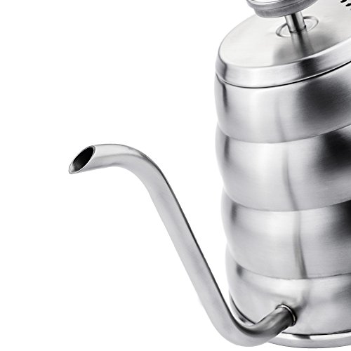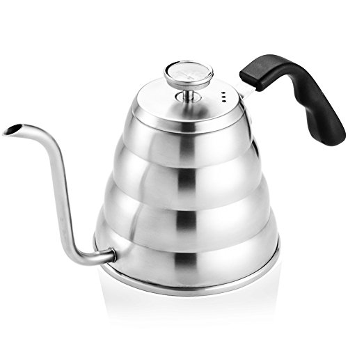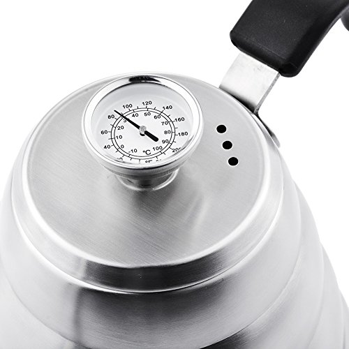 -. Feature : ★ HIGH QUALITY - With upgrade capacity 1.2L (40.5oz) and hot safe handle, this pour over kettle is made from premium food-grade stainless steel which builds to be sturdy and durable, great craftsmanship, light-weighted and easy to handle / ★ ACCURATE TEMPERATURE CONTROL - With built-in thermometer, you could control the water temperature exactly. The perfect flavor of coffee could only be poured with the proper temperature / ★WELL-DESIGNED GOOSENECK - Steady and well-controlled pouring is very important to the best tasting cup of coffee. With this drip coffee kettle, you could enjoy precise and smooth pouring easily at a slow rate, no spill all over and leak / ★ WIDE APPLICATION - Looks beautiful and functions perfectly. Work great on gas stove, fire, infrared heater, induction stovetop, glass top stove, electric ranges. Widely be used in coffee shop, café and professional hand drip / ★ 100% MONEY BACK GUARANTEE - Love It or Your Money Back! Happy customers give M&C Pour over Coffee Kettle high ratings, and your purchase is risk-free with no questions asked