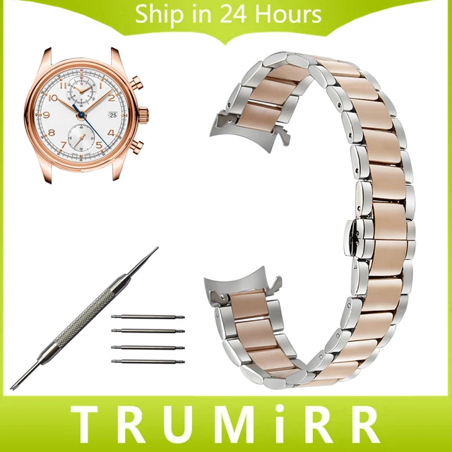 | [해외] 20 미리메터 22 미리메터 스테인레스 스틸 손목 곡선 엔드 스트랩 iwc 남성 여성 시계 밴드 butterfly 버클 손목 팔찌 실버 골드 |