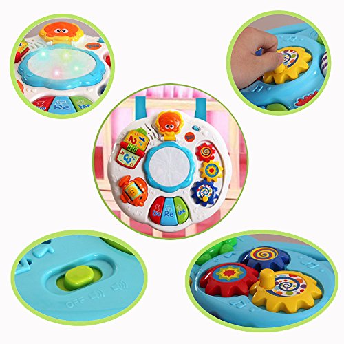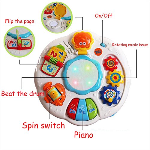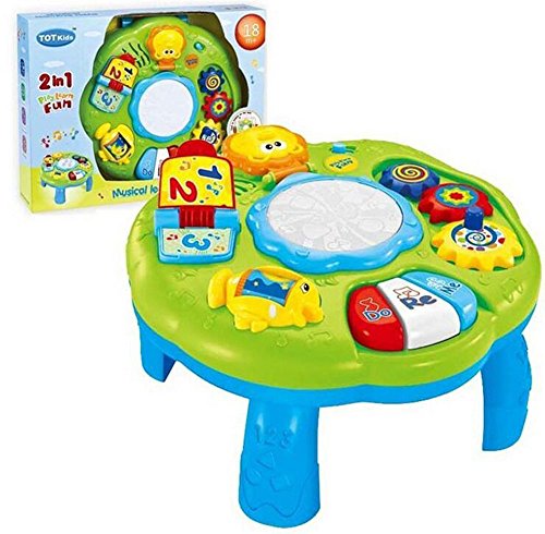 -. Binding : Toy -. Brand : Happy-Time -. EAN : 6133486691777 -. Feature : 【DRUM FUNCTION】Little kids can tap the drum in the middle of the desk to feel the rhythm with light up and sound effect. / 【PIANO FUNCTION】Lights up and allows for free play, classic melodies, and also introduces baby to colors and Do Re Mi. / 【ADDITIONAL FUNCTION】The music table can be tied on the bed for your little infant play it. The tie rope have set with the board. / 【ACTIVITY TABLE】Legs are assembled, removable and sturdy. So your boys girls can use the sound toys from 6 months+ sitting to 2 years old standing play. / 【GIFT IDEA】Made from safe and non toxic ABS plastic. Great gift idea for any occasion! 1.5V AA batteries required(not included). -. IsAdultProduct : 0 -. Label : Baby Art Park -. Manufacturer : Baby Art Park -. MPN : BN16014 -. PackageQuantity : 1 -. PartNumber : BN16014 -. ProductGroup : Toy -. ProductTypeName : TOYS_AND_GAMES -. Publisher : Baby Art Park -. Studio : Baby Art Park -. Title : Musical Learning Table Baby Electronic Education Toys for 6 month+ Toddlers by Happytime(Green)