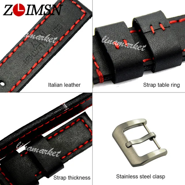 줄 두꺼운 블랙 + 레드 라인 가죽 시계 밴드 스트랩 벨트 팔찌 판매 밴드 Sweatband 손목 남성 여성 20 미리메터 22 미리메터 24 미리메터 새로운