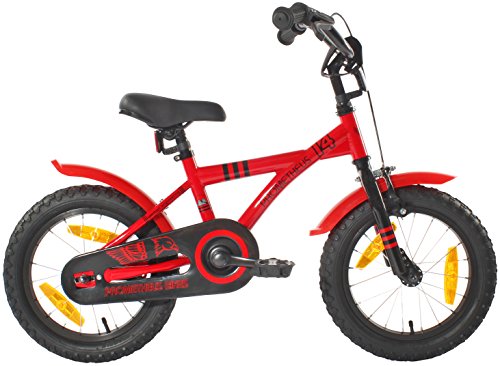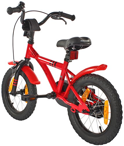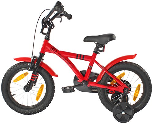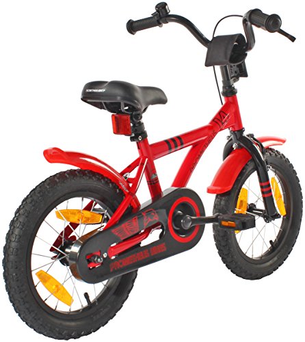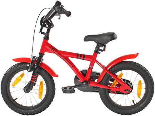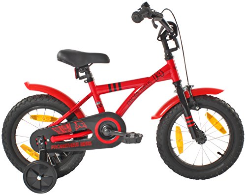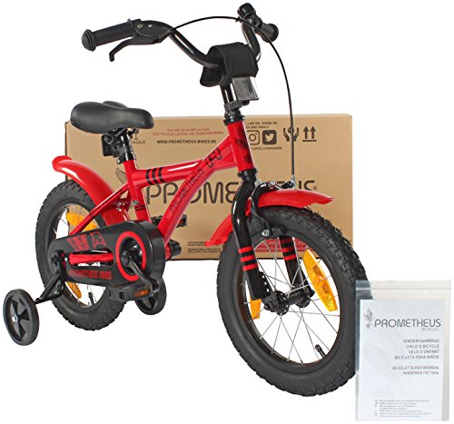PROMETHEUS BICYCLES PROMETHEUS Kinderfahrrad 14 Zoll Jungen und Madchen in Rot & Schwarz mit Stutzradern | Seitenzugbremse und Rucktrittbremse | inkl. Sicherheitspaket | ab 4 Jahre | 14 BMX Edition 2