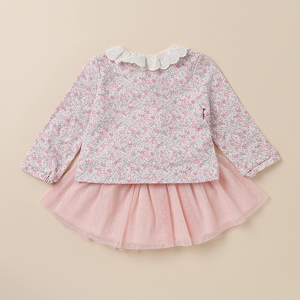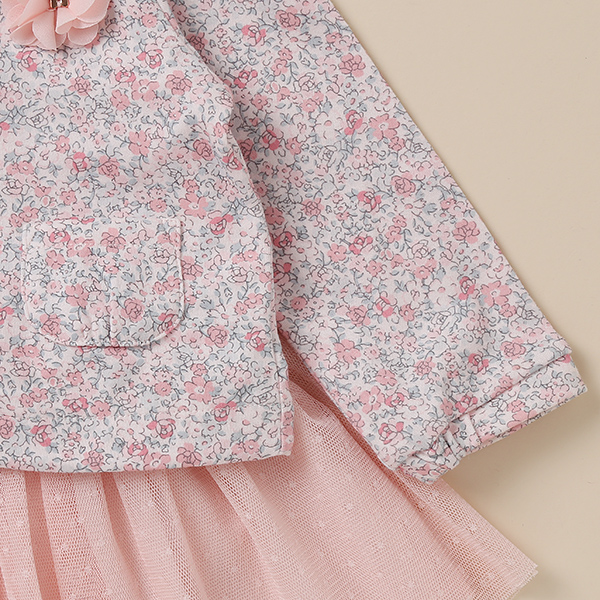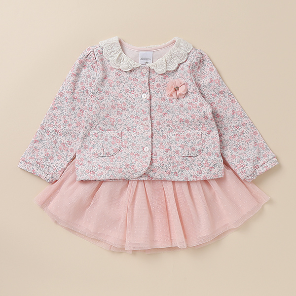 로맨틱한 핑크컬러의 화사한 꽃나염지를 사용한 가디건과