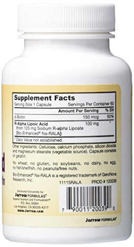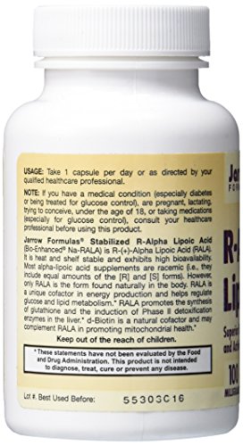 Jarrow Formulas R-Alpha Lipoic Acid, Supports Energy, Cardio Vascular Health, 100 mg, 60 Caps
