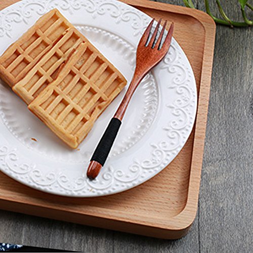 Cospring Handmade Phoebe Solid Wood Fork for Desserts, Chips, Snacks, Cereal, Salad, Fruit, Decoration, Long Handle with Jute string wrapped (Set of 6)