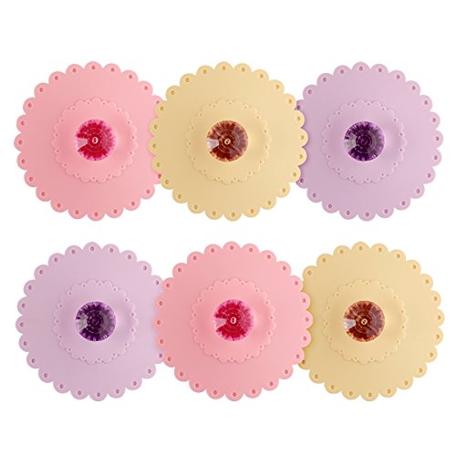 ME.FAM Diamond Flower,Set of 6 Pack,anti-dust Airtight Seal Silicone Cup Mug Cover,diy Covers,food-grade Silicone Drink Covers,spillproof,leakproof,keeps Beverages Hot or Cold, Silicone Cup Lid