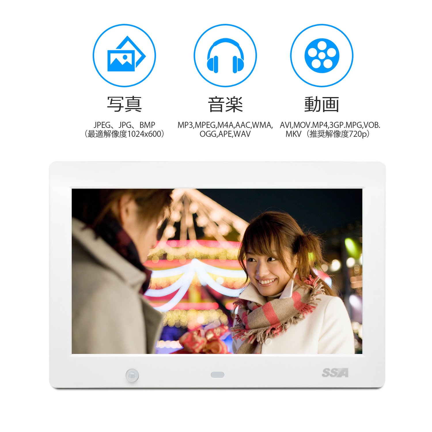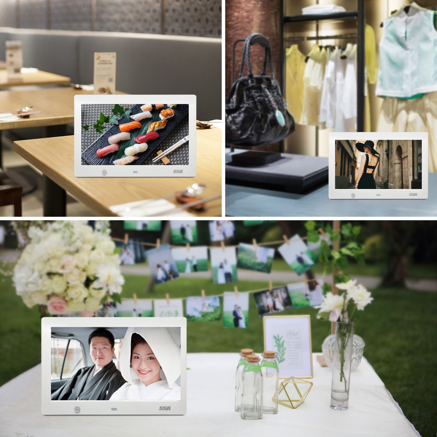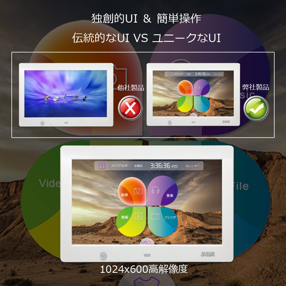 SSA 1024 × 600 high resolution · wide viewing angle 10.1 type wide color liquid crystal mounted digital photo frame.
