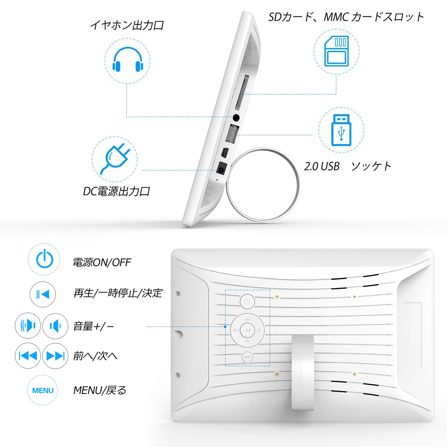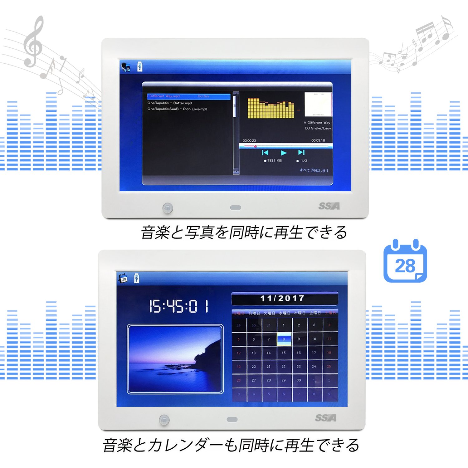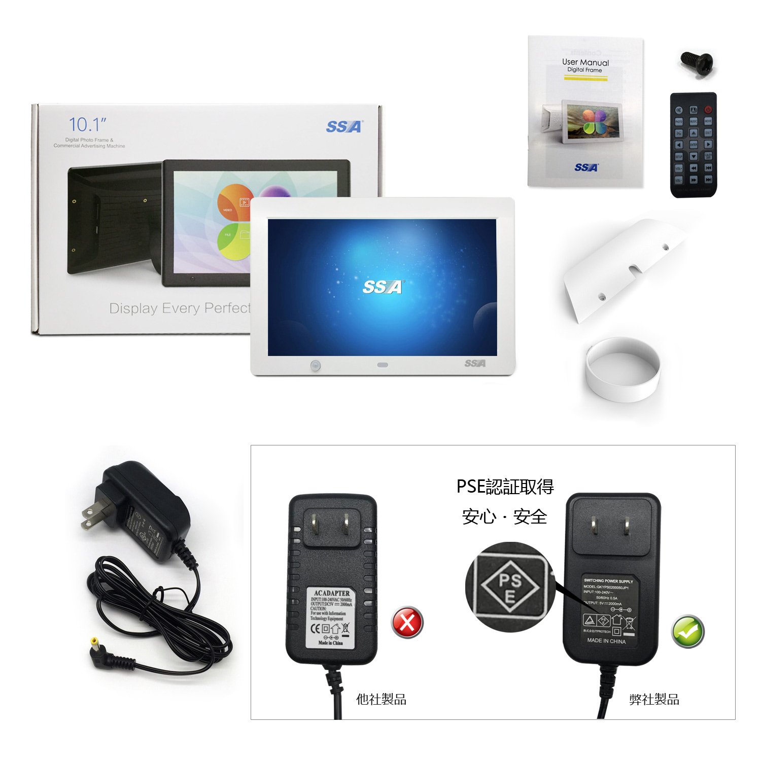 SSA 1024 × 600 high resolution · wide viewing angle 10.1 type wide color liquid crystal mounted digital photo frame.