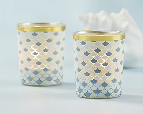 Kate Aspen 20201NA Seaside Escape Glass Votive (Set of 4), Blue and Gold