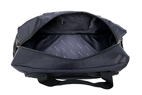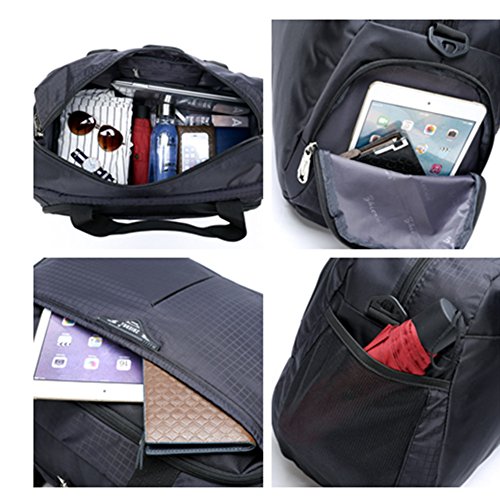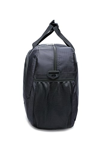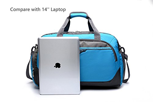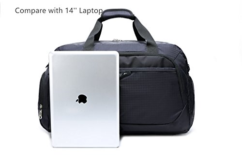 -. Feature : This duffel bag made of sturdy Nylon material, water resistant, lightweight; Net Weight: 1.54lb / Size: 20" L x 9" W x 12.6"H; roomy & plenty pockets, great for a flight carry-on bag, weekender bag, overnight bag, sprots duffel bag and gym shoulder bag / Features: Main zipped compartment fits 14" Laptop, two sets of summer or autumn clothes, one pair of shoes; 2 front separate zipper pockets for easy access to mobile phone, Ipad, umbrella, towel; 1 inner zipped pocket; 1 zippered side pocket; 1*side mesh pocket for beverage or water bottle. Plastic Gusset Bottom make the bag's bottom more durable. Smooth heavy-duty zippers on main body that can be locked by the supplied key padlock / Unique fashion design travel bag for men & women with adjustable & detachable padded shoulder strap for comfort and Dual Handles for easy carrying. The bag's weight capacity is 55lb / Multi-functional bag for school, travel, sport and daily use. All Joda bags enjoy 1 year warranty, 30 days free return. Any further problems with your items, please feel free to contact us