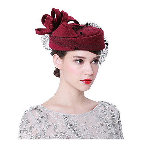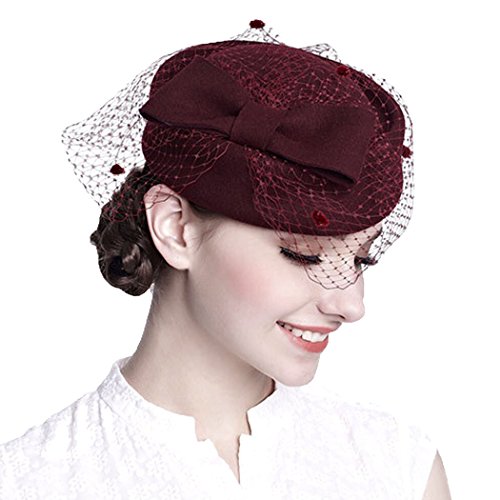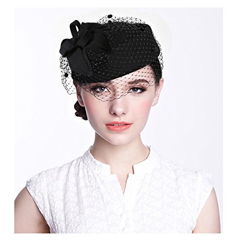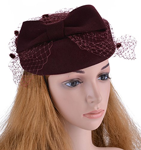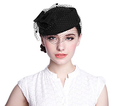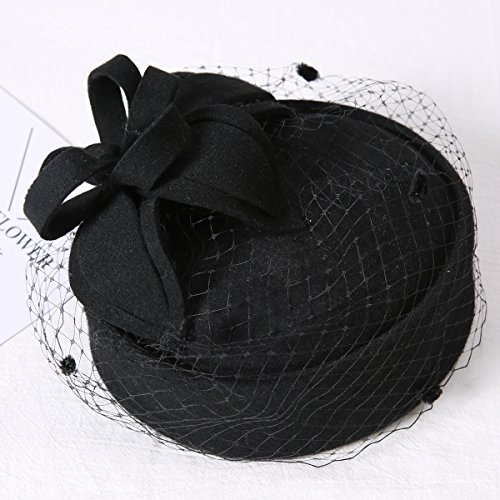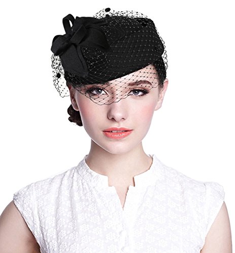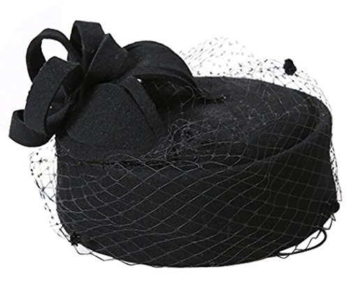Aniwon Wool Pillbox Hat Retro British Style Cocktail Party Wedding Fascinator Veil Hat for Women