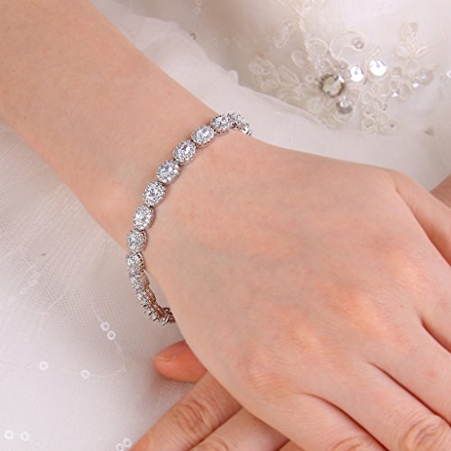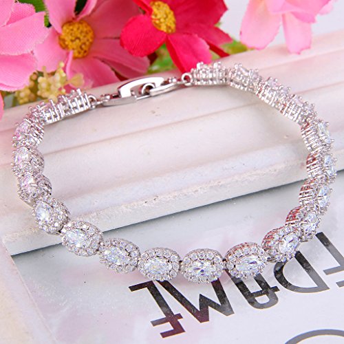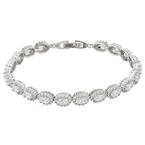 -. Title : EVER FAITH® Silver-Tone Full Cubic Zirconia Gorgeous Oval Roman Tennis Bracelet