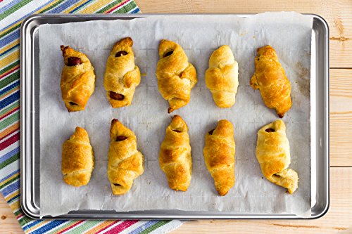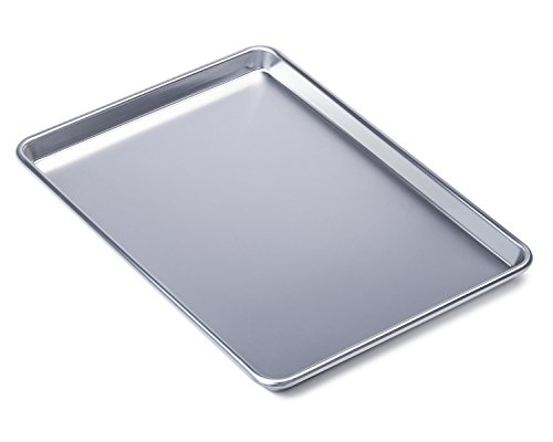 Baking Sheet Features: - The baking sheet is made of aluminum which will never rust for a lifetime of durability - Your baked goods will rise and bake evenly due to the superior heat conductivity of aluminum - The reinforced encapsulated steel rim prevents warping - Easy clean up, hand wash only