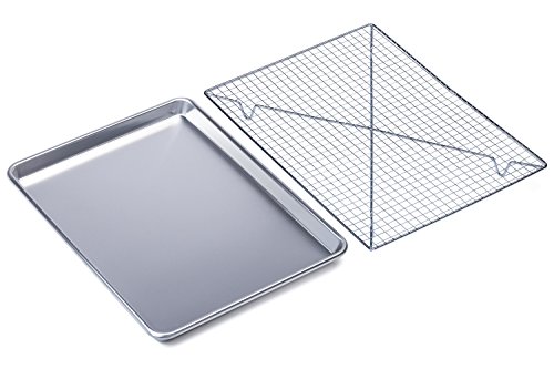 Each set comes with a commercial grade baking sheet and a cooling rack that fits perfectly inside of the sheet! Stop buying cheap sets that have your cooling rack wobbling inside your sheet! Both you and your delicious treats deserve better.