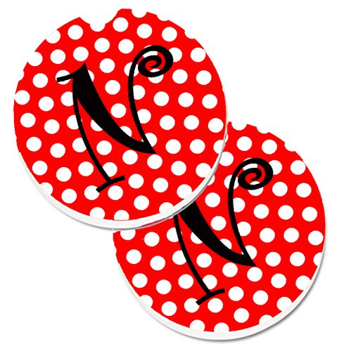 Caroline's Treasures Letter N Initial Monogram Red black Polka Dots Set of 2 Cup Holder Car Coasters CJ1012-NCARC, 2.56, Multicolor