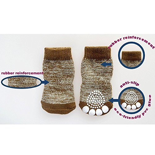 -. Binding : Misc. -. Brand : Mable Ruth -. Feature : IMPROVE DOG TRACTION: These socks are made using the latest anti-slip grip technology that will aid your dog when walking on any type of flooring, making these the ideal dog socks for hardwood floors! / EXTREMELY COMFORTABLE: Made from the highest quality cotton, these non-slip dog socks are extremely comfortable so they'll love to wear them! / DURABILITY: These dog socks for small to large dogs are reinforced with strong eco-friendly glued grippers to make sure that each sock will last for a long time and provide the maximum comfort for your dog. / EASY TO PUT ON: This set of 4 breathable nonslip dog socks is extremely easy to put on and take off. The top layer is tight enough to stay in place during moments of high activity, but easy enough to take off when stretched by the human hand. / LIGHTWEIGHT CONVENIENT: This set of 4 non-slip dog socks are lightweight and practical for dogs in daily basic wear making these the best dog socks for hardwood floors and for the winter time. These dog socks are also great to add protection in healing infections and control scratching and itching an infection after receiving treatment. -. Label : Mable Ruth -. Manufacturer : Mable Ruth -. PackageQuantity : 4 -. ProductGroup : Pet Products -. ProductTypeName : PET_SUPPLIES -. Publisher : Mable Ruth -. Studio : Mable Ruth -. Title : Mable Ruth Pet Dog & Puppy Nonslip Socks - Comfortable Shoes Boots With Rubber Reinforcement - Set of 4 Breathable Soft Traction Knit Socks For Dogs - Comfortable Sock Design for Pet Dogs