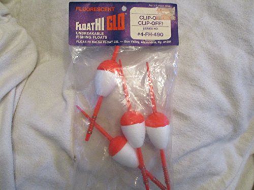 -. Feature : FloatHI Glo / Flourescent fishing float / 4pack in one bag / Fishing bobber / Clip on/Clip off / Length: 6" / Color: Fluorescent orange and white / Unbreakable / Made of plastic tips and foam bodies / Vintage item / Discontinued item / Hard to find / Insrtuctions on package