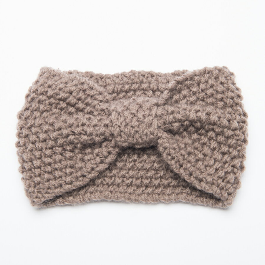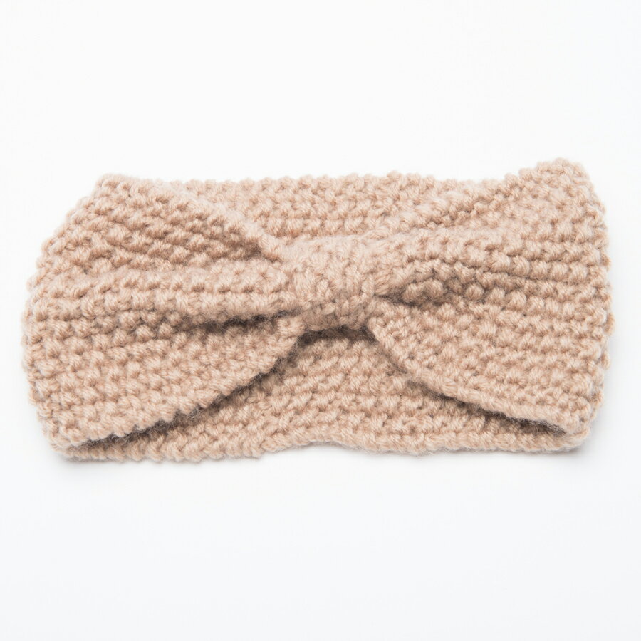 ニットの編み方がボコボコして可愛らしいリボンの形のヘアバンドです。