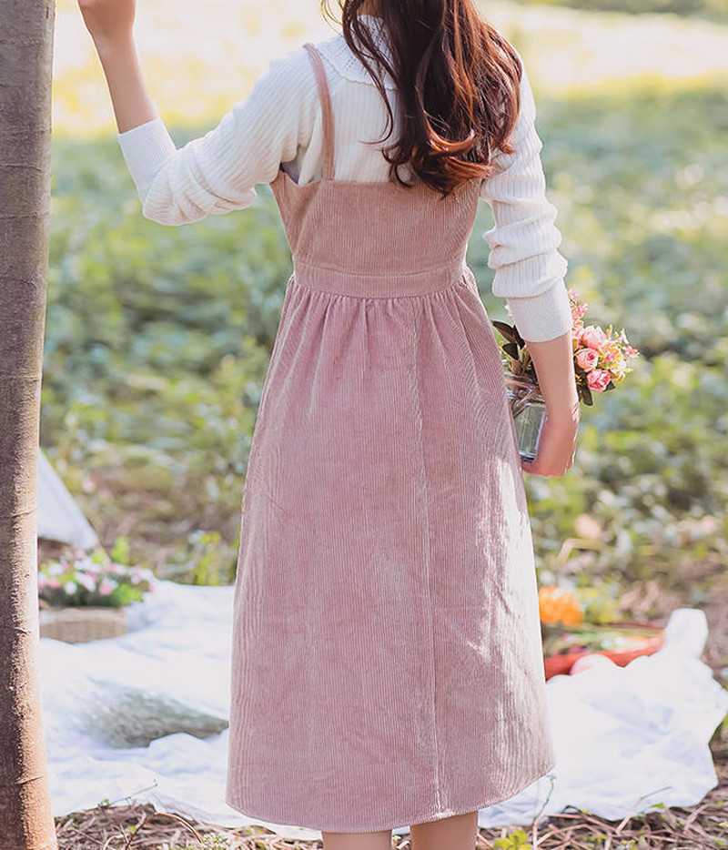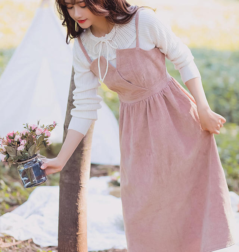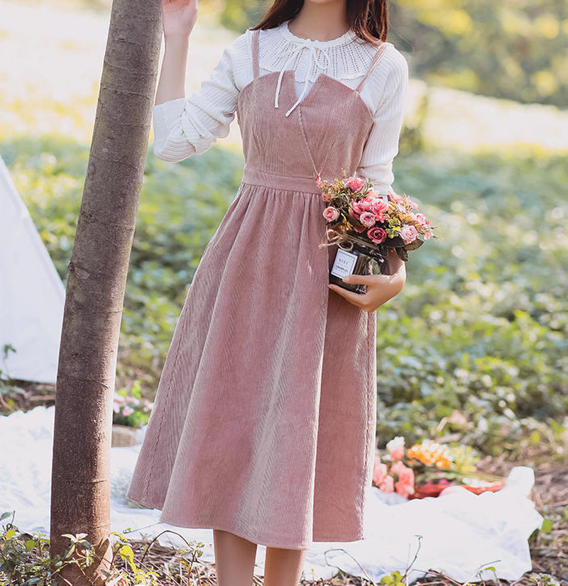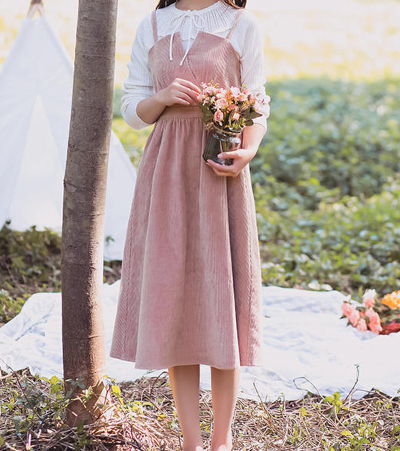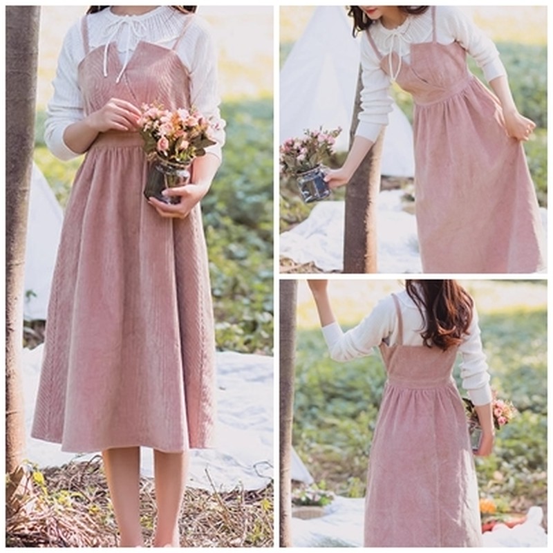 ♢ポイント♢ ガーリーな雰囲気のひざ下ワンピースです。 ホワイト系のトップスと合わせると◎