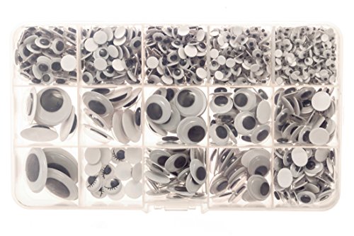 Variety Value Pack SANC 1 box/lot (approx.1120 pcs) 0.16 inches (4mm) to 1 inch (25mm) round Plastic self-adhesive black googly wiggle eyes Wide Variety Assorted Sizes