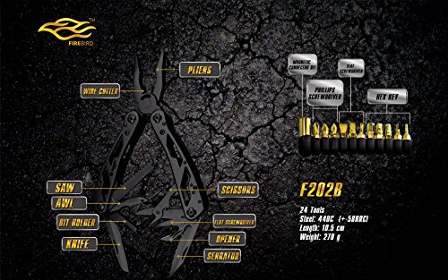 Firebird F202-B Black Pocket Multitools By Ganzo G202-B with Attachable Bits Pro-grade Steel Color Motor Multi Pliers Tool Toolkit